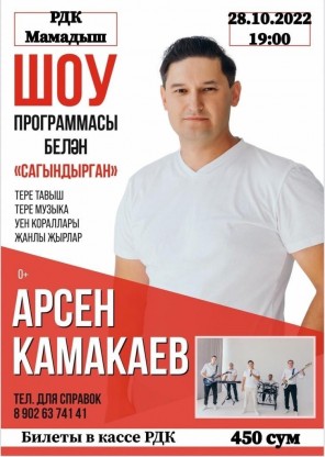Я, Арсен Камакаев, и моя команда приглашаем Вас на душевный концерт с живой музыкой. Окажитесь в зале и погрузитесь в уютную атмосферу дружеской встречи, музыкальных инструментов, душевных песен.