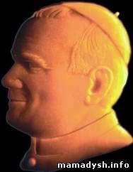 | Иоан Павел II Портрет-барельеф (3х3 мм) вырезан из терновой косточки. Работа Николая Сядристого (увеличено)